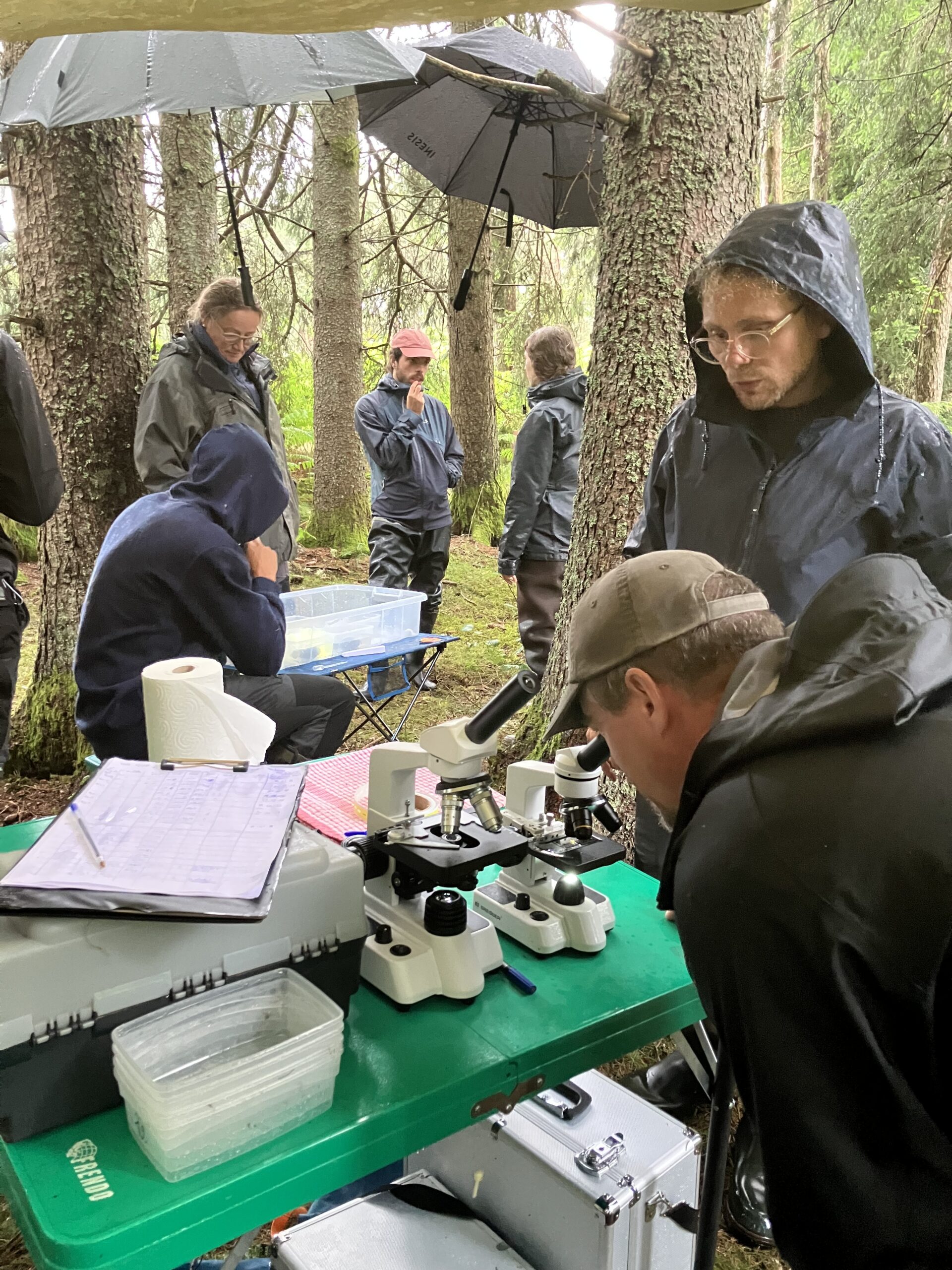 Photos 6 à 8 : Malgré la pluie, les participants ont pu observer quatre des cinq stades de maturité des larves de mulette perlière, en espérant une prochaine récolte pour les collègues auvergnats.