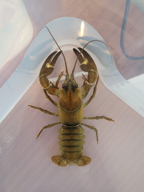 Une étude ADNe permet donc d’opérer une détection à large échelle spatiale (ex.: bassin versant), notamment des secteurs de cours d’eau propices à la présence des écrevisses, pour un coût de plus en plus raisonnable et sans avoir à les prospecter entièrement à pied. La prospection à pied demande en effet des moyens importants et présente le risque de perturber le milieu. De même, l’étude ADNe permet de détecter la présence de la peste de l’écrevisse, aussi appelée aphanomycose, un champignon pathogène létal pour l’écrevisse à pattes blanches. Les écrevisses exotiques envahissantes, telles que l’écrevisse du Pacifique (Pacifascatus leniusculus ; voir la photo) sont porteuses saines.